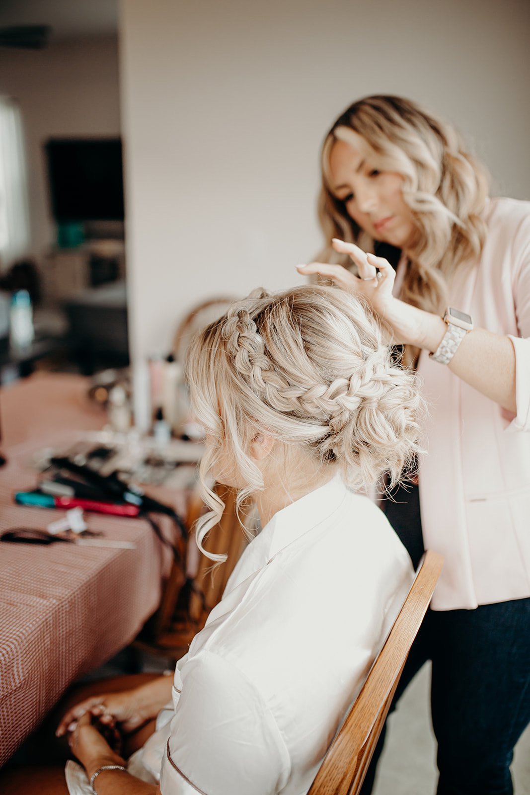 The bride and her party have the freedom to choose from a wide range of classic up or down styles. Whether you envision an elegant updo or a flowing down hairstyle, Karynn and her skilled stylists will bring your vision to life.